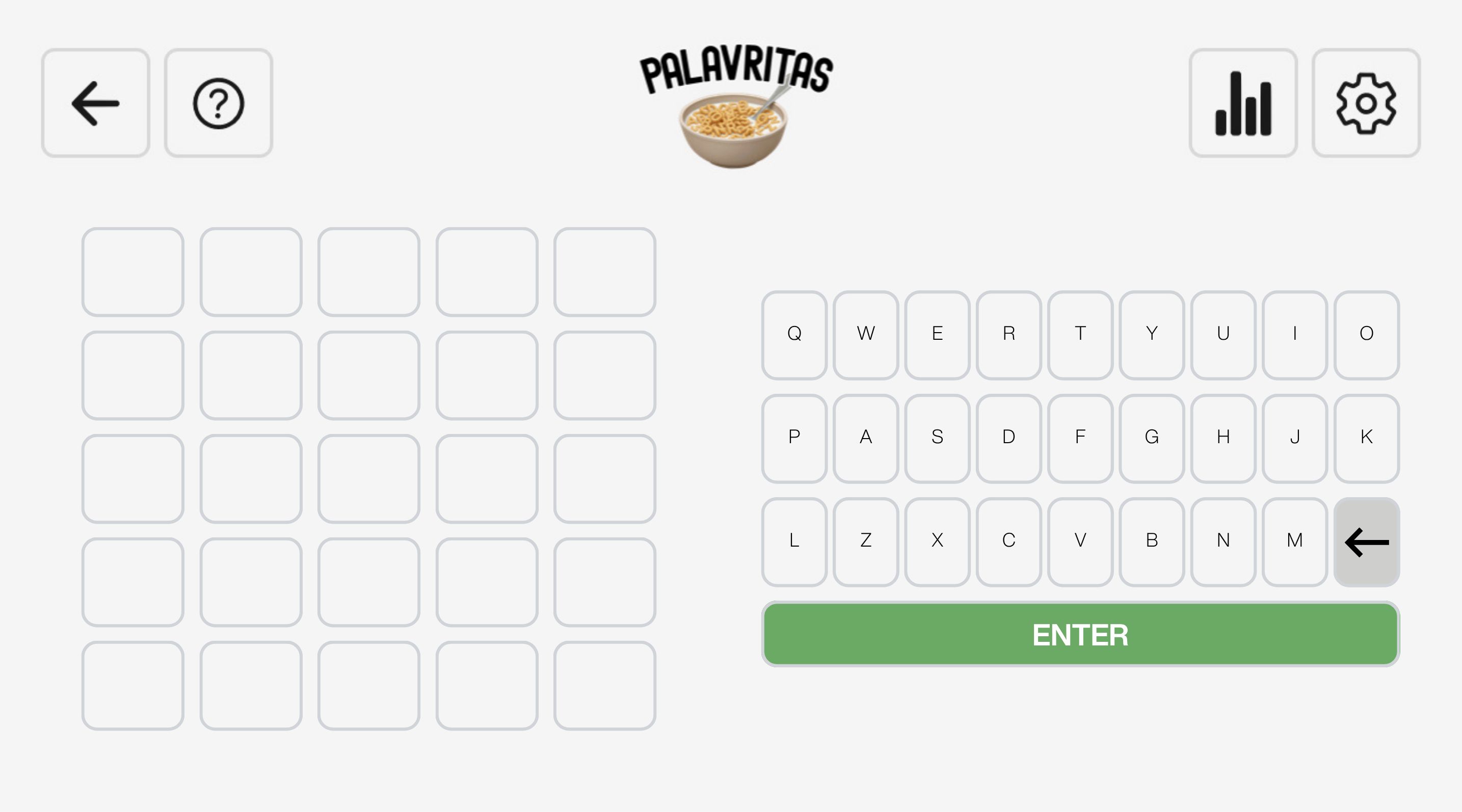 O jogo é o seguinte: você tem 6 tentativas para adivinhar a palavra do dia. Cada tentativa deve ser uma palavra válida de 5 letras. |